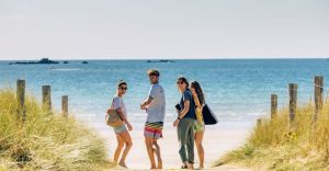 Un sentier, le long de la dune, vous permet de rejoindre le magasin et le restaurant avec sa vue magnifique sur la baie de Quiberon...