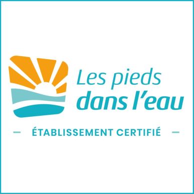 Les Pieds dans l'eau est un label qui regroupe campings, hôtels et centres de vacances réellement les pieds dans l'eau, c'est à dire sans route à traverser pour accéder à une rivière, la mer ou un lac, ce qui est assez rare en France.
