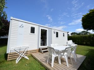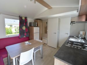 Bienvenue dans notre mobil-home familial !  Ici, vous trouverez un espace de vie lumineux, pratique et tout confort pour des moments en famille. Avec deux chambres séparées, chacun peut profiter d’un peu d’intimité. La cuisine équipée est prête pour préparer les plats que vous aimez et le séjour-salon avec banquette convertible est suffisament spacieux pour se retrouver tous ensemble. Pour les pauses détente, direction la terrasse aménagée ! Avec son salon de jardin, c'est l'endroit rêvé pour partager des repas, siroter un verre entre amis, ou tout simplement se relaxer après une belle journée à la plage !