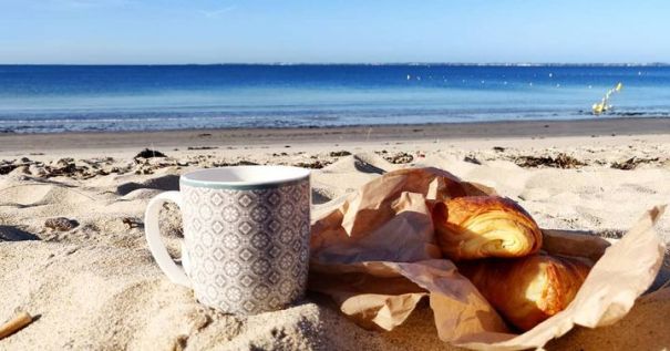 Notre petit conseil pour bien démarrer ? Passez chercher un café et des croissants chauds à l'épicerie de Kervillen, juste à côté, pour les déguster les pieds dans le sable.